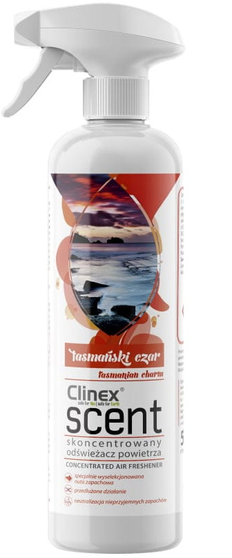 Wysoce skoncentrowany odświeżacz powietrza Clinex Scent jest unikalnym produktem do zastosowania we wszelkiego rodzaju pomieszczeniach idealny do odświeżania powietrza w biurach, przestrzeniach dla palących, pokojach gościnnych, toaletach. Dedykowany zwłaszcza branży HoReCa. Unikalna nuta zapachowa sprawia, że preparat wyróżnia się efektywnym działaniem na nieprzyjemne zapachy we wszystkich obszarach. O zapachu Tasmański Czar.